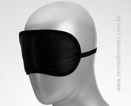 Máscara para olhos confeccionada em nylon com revestimento fino acolchoado e fita elástica.Formato 20,7 x 10 cm. Personalização em silkscreen 1 cor.