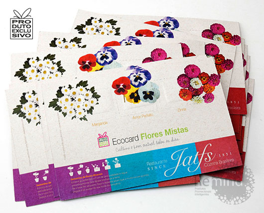 Flores transmitem carinho, beleza e renovação. Com o Ecocard 10x15 cm com sementes mistas de Margarida, Amor Perfeito e Zinnia, sua marca estará presente em cada florescimento. Um presente que desabrocha e reforça o compromisso com o meio ambiente e com quem o recebe. Ideal para ações promocionais criativas, memoráveis e sustentáveis.