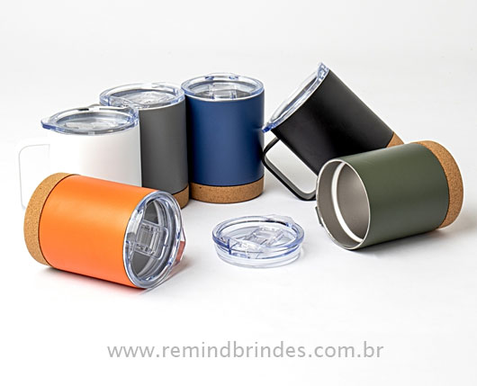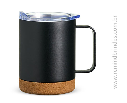 Caneca térmica com cortiça de 400 mL: elegância, qualidade e design.